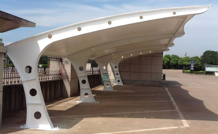 膜結(jié)構(gòu)車棚具有十分良好的承載性能,能以很小的厚度承受相當(dāng)大的荷載。膜結(jié)構(gòu)車棚的強(qiáng)度和剛度主要是利用了其幾何形狀的合理性,以材料直接受壓來代替彎曲內(nèi)力,從而充分發(fā)揮材料的潛力。因此膜結(jié)構(gòu)車棚是一種強(qiáng)度高、剛度大、材料省的即經(jīng)濟(jì)又合理的結(jié)構(gòu)形式。