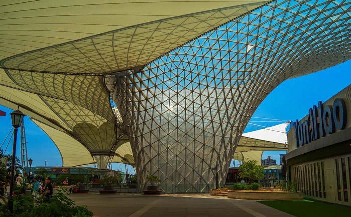 2、商業建筑:膜膜結構建筑因新穎的建筑造型、特殊的夜景,具有十分獨特的建筑可識性和商業效應,可應用于各種商業建筑,如大型商場、購物中心、酒店、餐廳等,小型攤位、展位、商店、步行街等,對大型封閉建筑空間應進行建筑熱工設計、光環境設計,達到保溫隔熱要求,特別設計的藝術燈光效果,聲學環境一般不特殊要求。